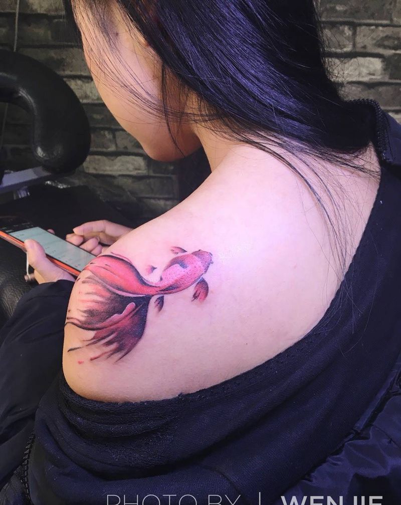 当前位置: 首页 >四川省自贡市纹身店-自贡南录刺青纹身图案>红纹身图片_成品肩部清新国画动物火骷髅纹身图案