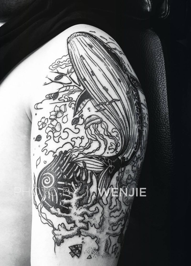 当前位置: 首页 >四川省自贡市纹身店-自贡南录刺青纹身图案>鲸纹身图片_成品手臂清新动物自贡火骷髅遮盖纹身图案