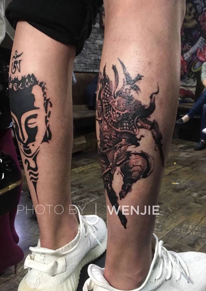 • T网红王老大花腿龙纹身图片_腿部新传统纹身图案