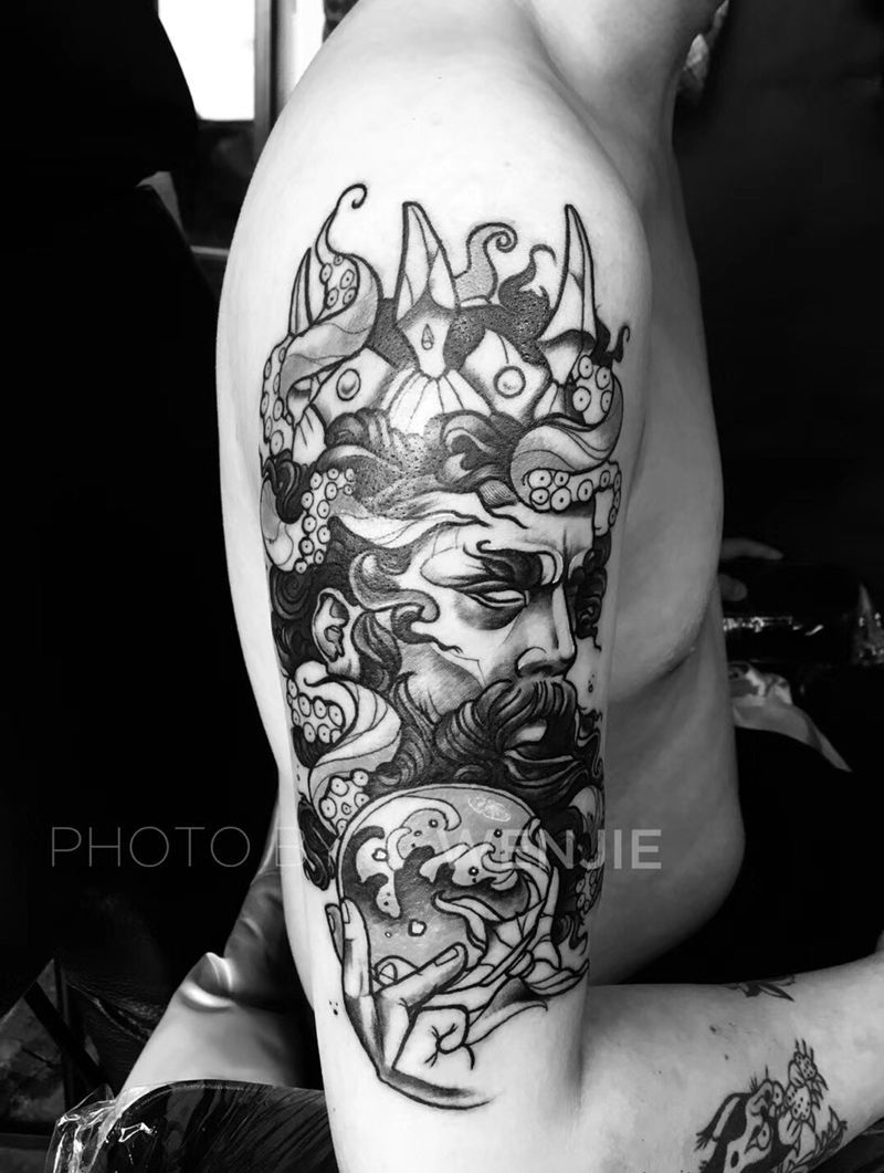 • 纹身吧推荐的披肩图腾半胛纹身图案作品展示