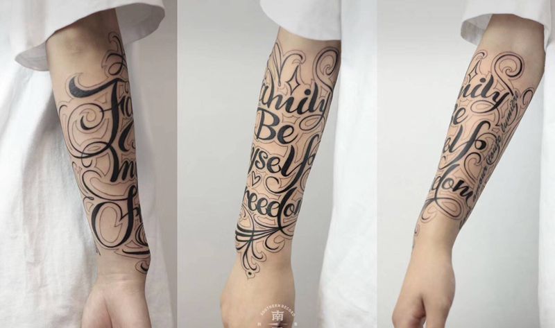 当前位置: 首页 >四川省自贡市纹身店-自贡南录刺青纹身图案>原创设计—花体字纹身图片_手臂手部花体字纹身图案