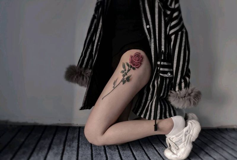 当前位置: 首页 >四川省德阳市纹身店-黑白刺青纹身图案>玫瑰纹身图片_腿部老传统纹身图案