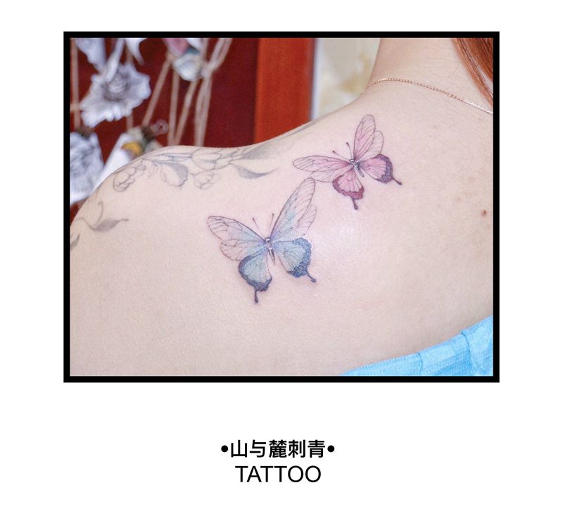 当前位置: 首页 >四川省自贡市纹身店-自贡山与麓刺青纹身图案>素花纹身图片_肩部New School水墨素花树叶蝴蝶纹身图案