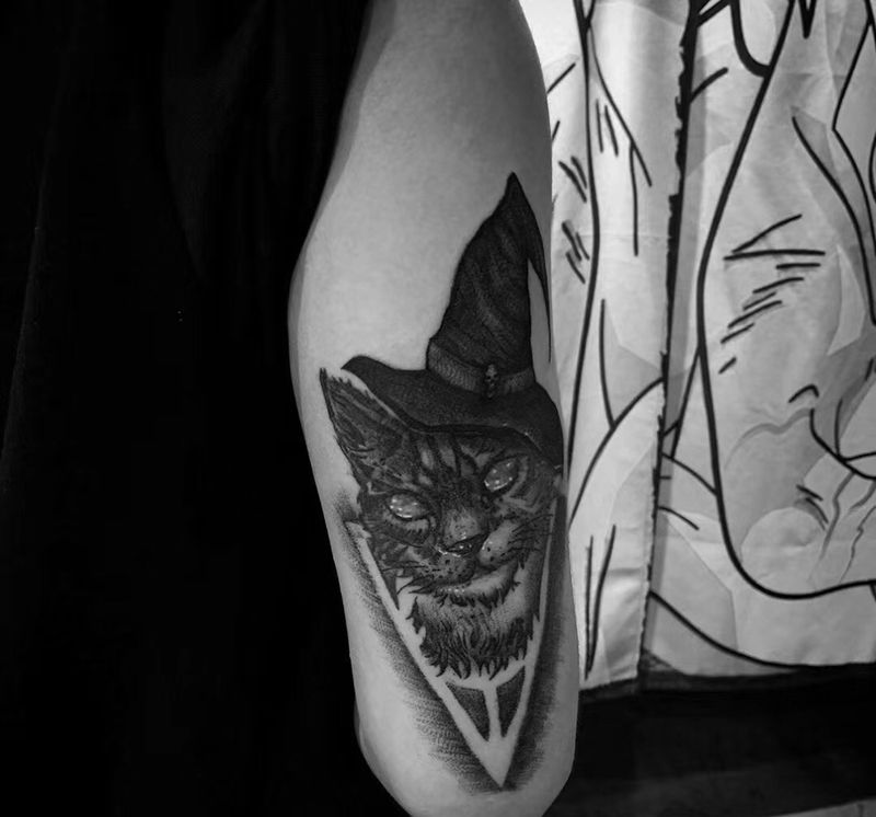 black work纹身图片_腿部手部欧美写实点刺猫蛇全视之眼纹身图案