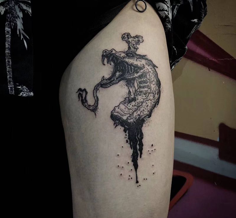 当前位置: 首页 >四川省自贡市纹身店-自贡山与麓刺青纹身图案>black work纹身图片_腿部手部欧美写实点刺猫蛇全视之眼纹身图案