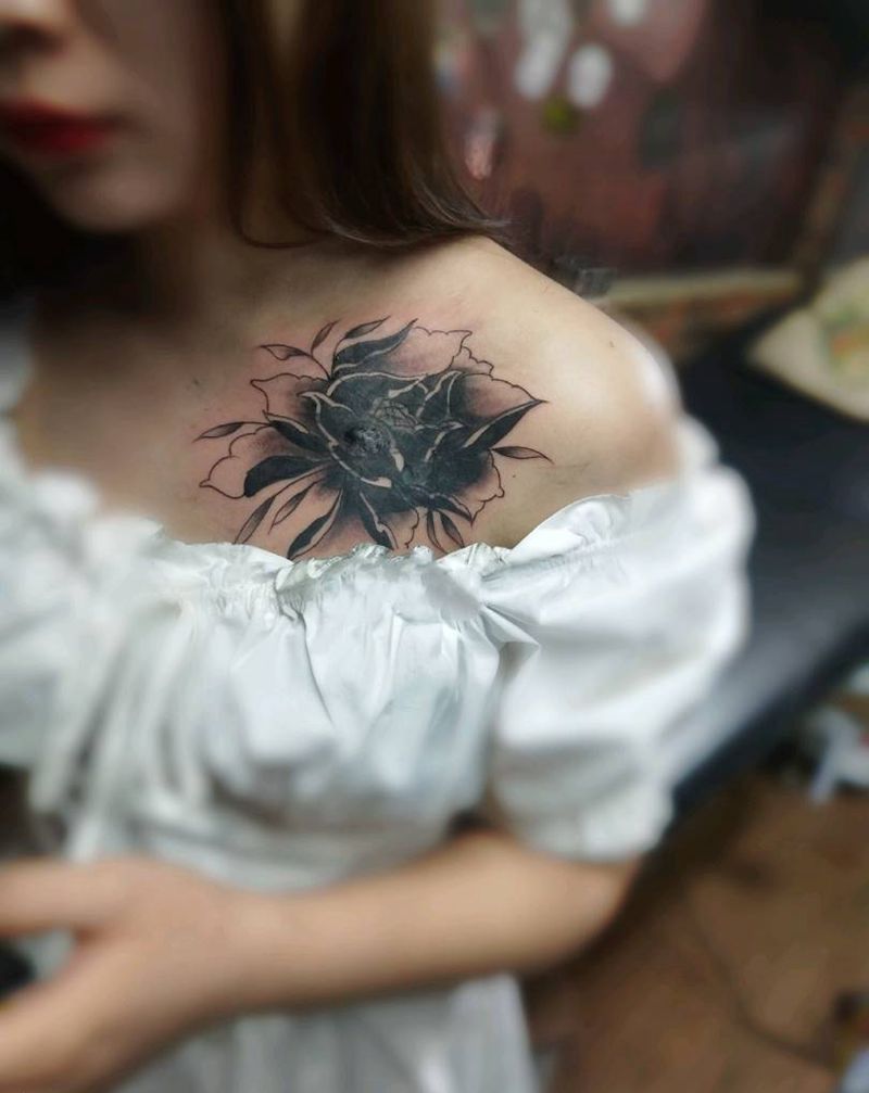 • 女性大花胸纹身_43张霸气漂亮的女性大花胸纹身图案作品