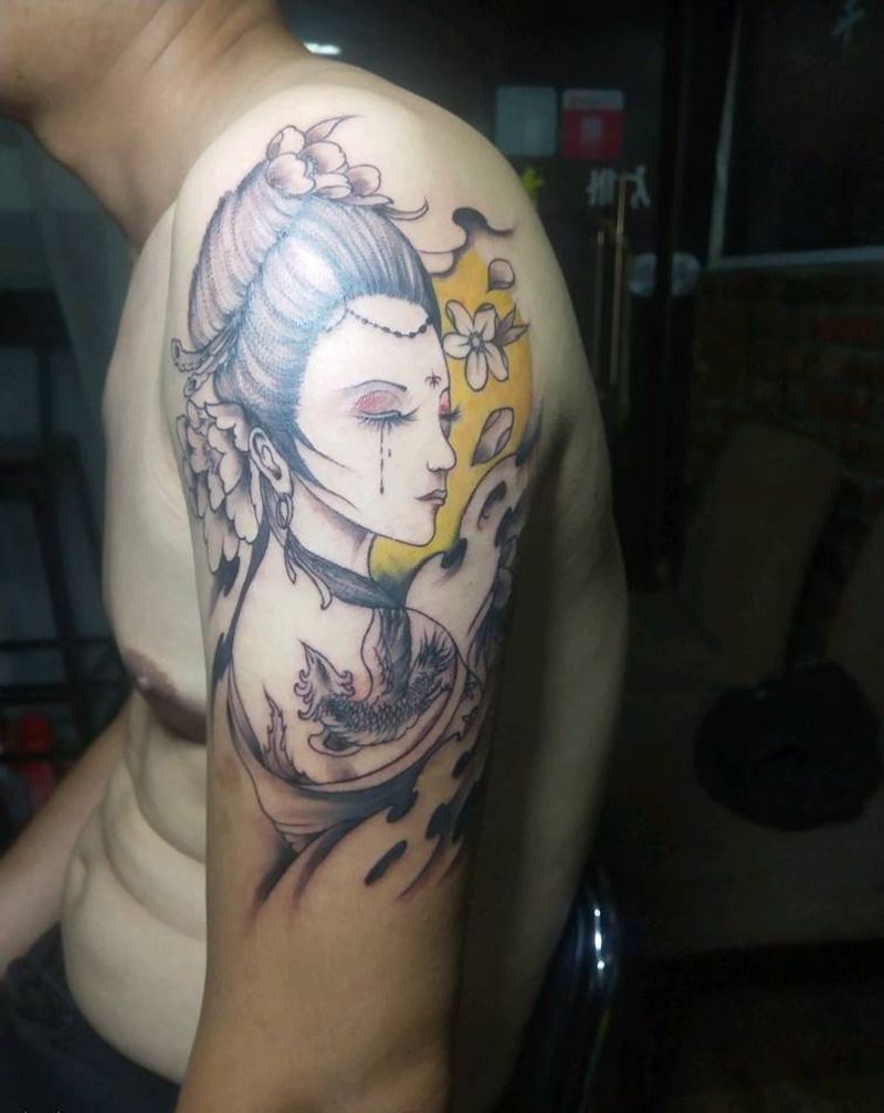 当前位置: 首页 >四川省德阳市纹身店-零度刺青纹身图案>落泪艺妓纹身图片_手臂纹身图案