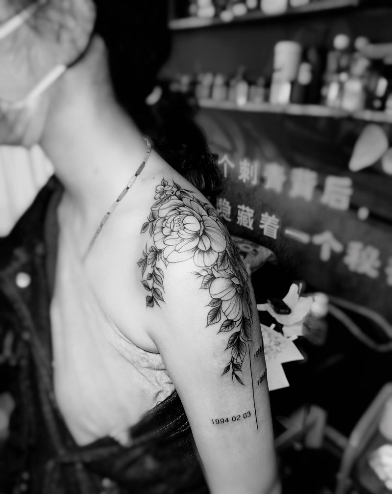 素花纹身图片_肩部纹身图案