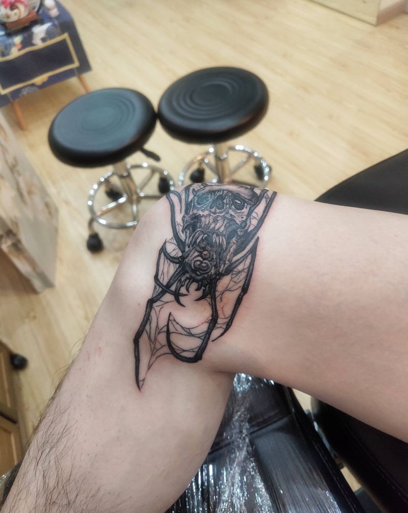 当前位置: 首页 >四川省自贡市纹身店-清晓刺青纹身图案>蜘蛛遮盖纹身图片_腿部蜘蛛骷髅纹身图案