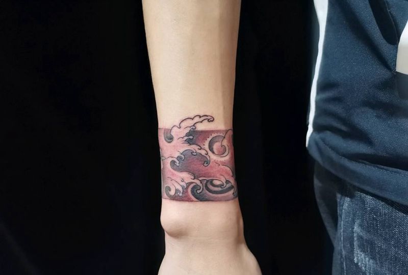 臂环纹身图片_手部新传统水浪纹身图案
