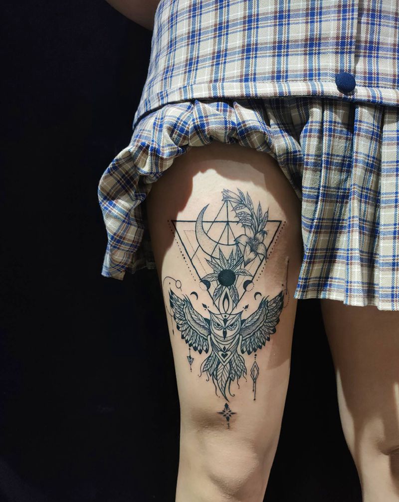 当前位置: 首页 >四川省德阳市纹身店-灵魂刺青纹身图案>猫头鹰纹身图片_腿部点刺纹身图案