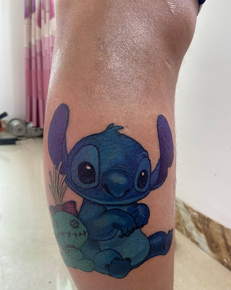 史迪奇纹身图片_腿部New School卡通人物纹身图案