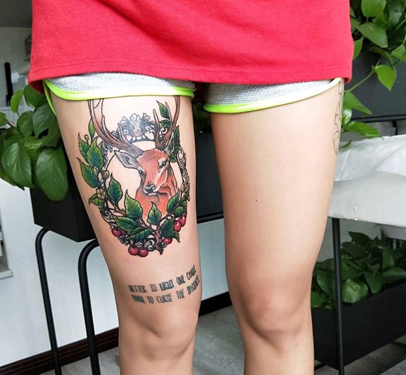 当前位置: 首页 >四川省攀枝花市纹身店-弗雷刺青文化纹身图案>鹿纹身图片_腿部New School鹿纹身图案