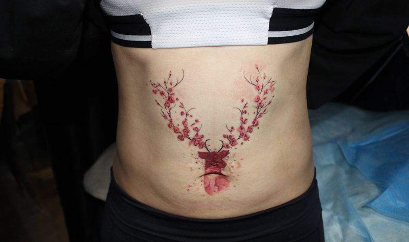 • 女性大花胸纹身_43张霸气漂亮的女性大花胸纹身图案作品