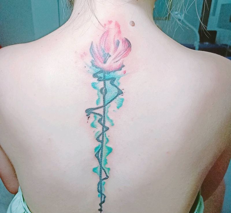 骨如莲纹身图片_背部水彩水墨荷花纹身图案