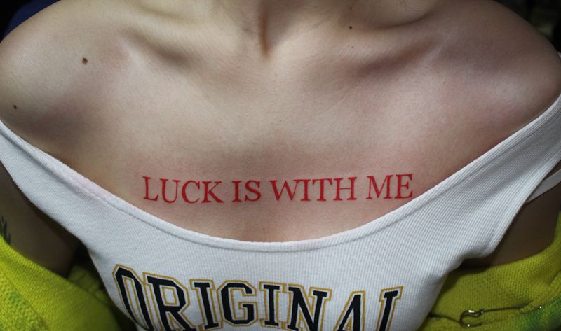 胸口红英文纹身图片_胸部花体字水彩红色英文字体纹身图案