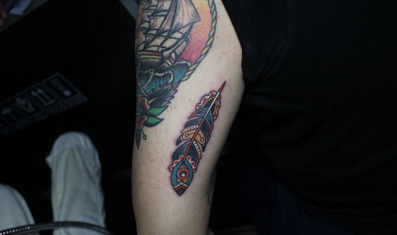 当前位置: 首页 >四川省泸州市纹身店-四川泸州巫鸦纹身纹身图案>school羽毛纹身图片_手臂Old SchoolNew School羽毛old school纹身图案