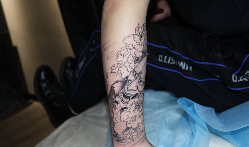 当前位置: 首页 >四川省泸州市纹身店-四川泸州巫鸦纹身纹身图案>般若牡丹纹身图片_手臂新传统老传统般若牡丹小臂纹身图案