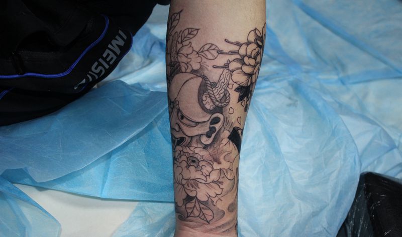 当前位置: 首页 >四川省泸州市纹身店-四川泸州巫鸦纹身纹身图案>般若牡丹纹身图片_手臂新传统老传统般若牡丹小臂纹身图案