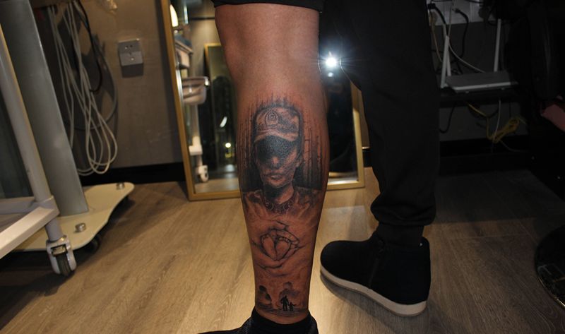 当前位置: 首页 >四川省泸州市纹身店-四川泸州巫鸦纹身纹身图案>退伍生娃写实小腿纹身图片_腿部欧美写实水墨写实肖像电影纹身图案