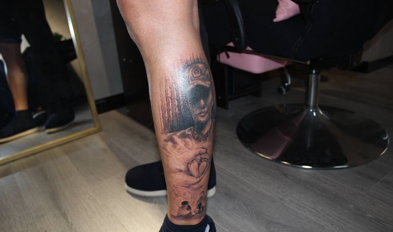 当前位置: 首页 >四川省泸州市纹身店-四川泸州巫鸦纹身纹身图案>退伍生娃写实小腿纹身图片_腿部欧美写实水墨写实肖像电影纹身图案