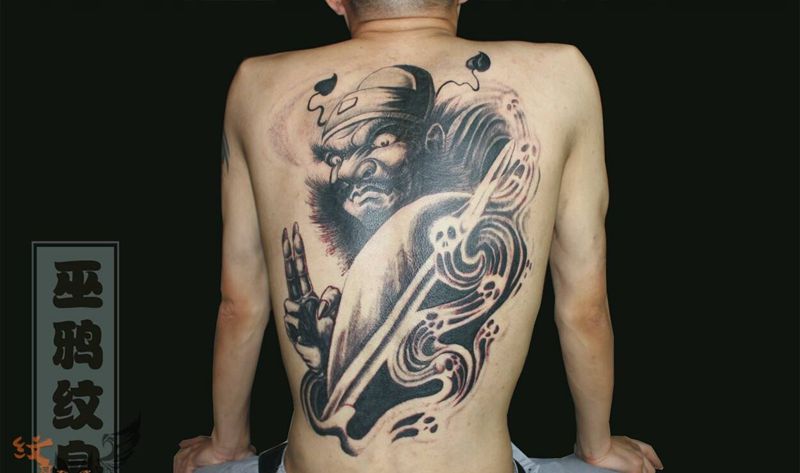 黑灰满背纹身图案