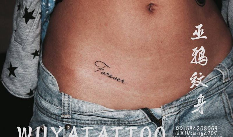 • T关于私处得爱!纹身图片_成品腹部清新字符图腾纹身图案