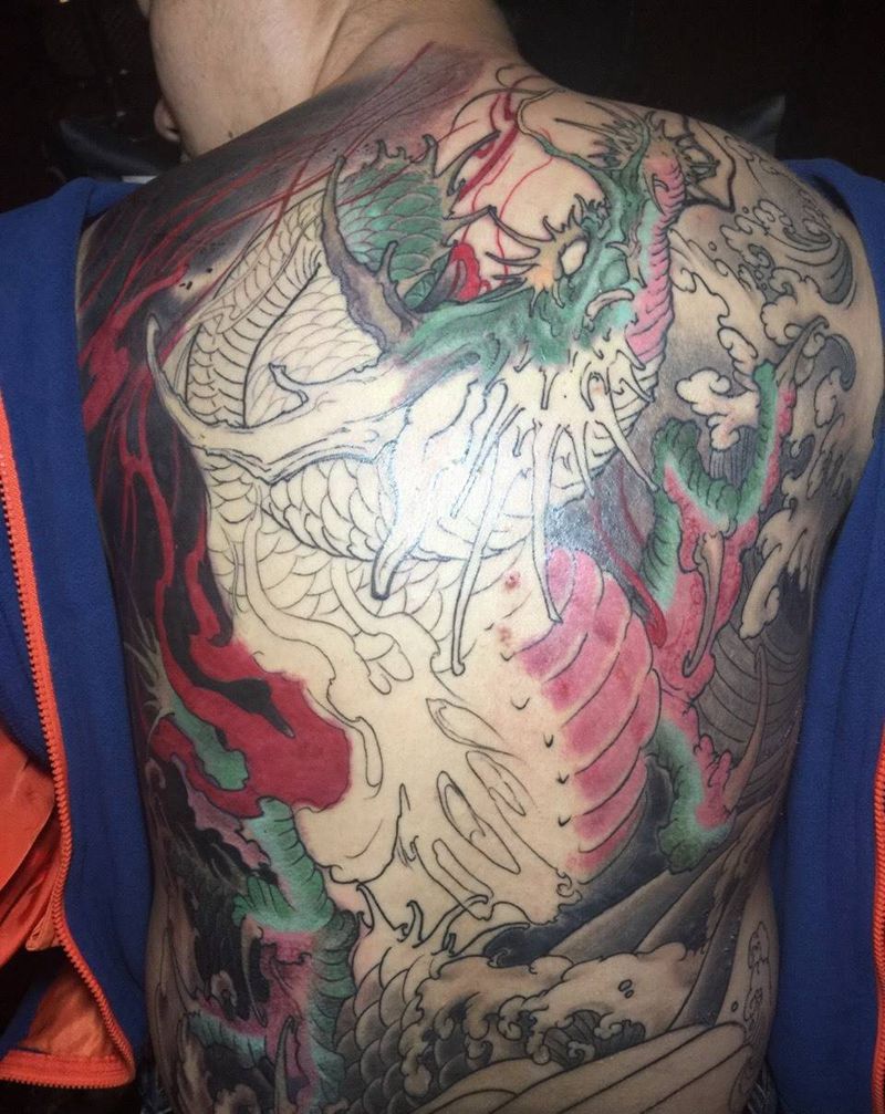 当前位置: 首页 >四川省泸州市纹身店-四川泸州巫鸦纹身纹身图案>新传统大龙满背纹身图片_成品背部传统清新国画鬼神动物纹身图案