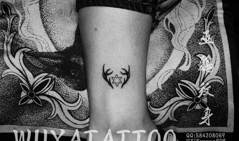 花鹿角英文汉字纹身图片_成品脚部胸部手部欧美植物字符动物清新写实纹身图案