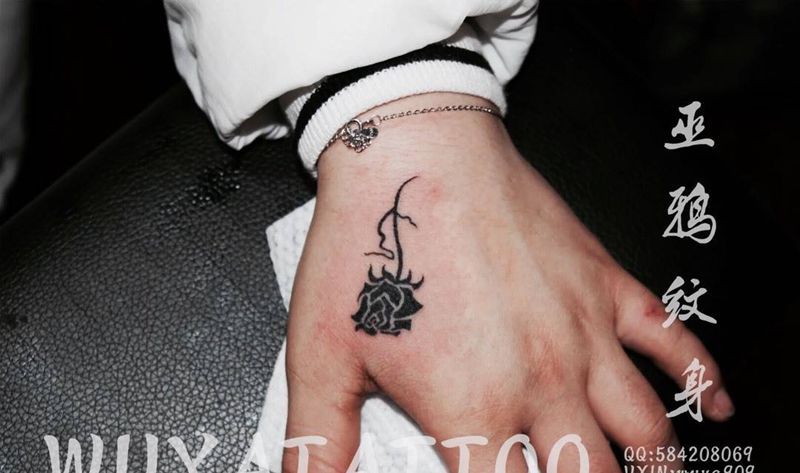 • 手背潮流时尚的玫瑰花眼睛纹身图案