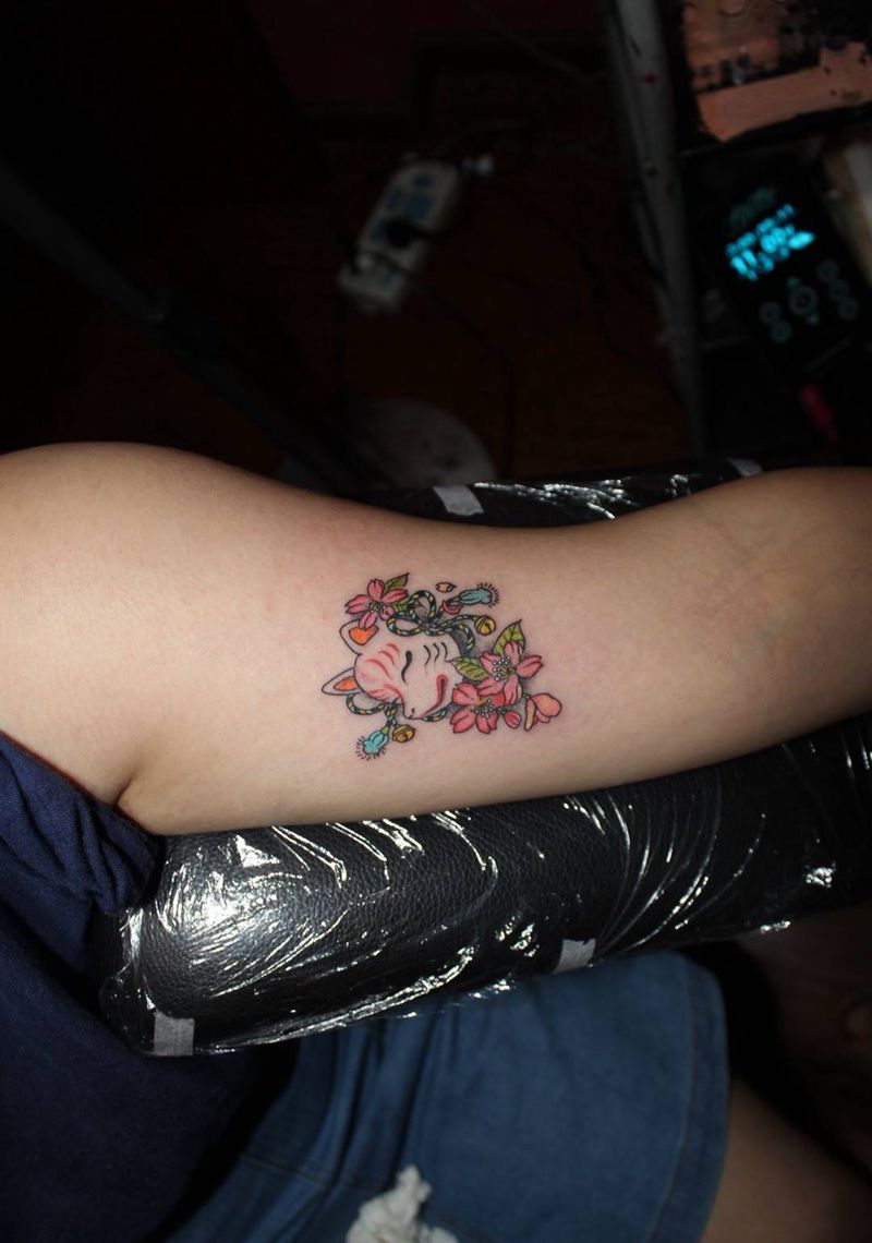 当前位置: 首页 >四川省泸州市纹身店-四川泸州巫鸦纹身纹身图案>日式和风狐狸面具纹身图片_成品手臂传统习俗动物鬼神静物字符宗教清新纹身图案