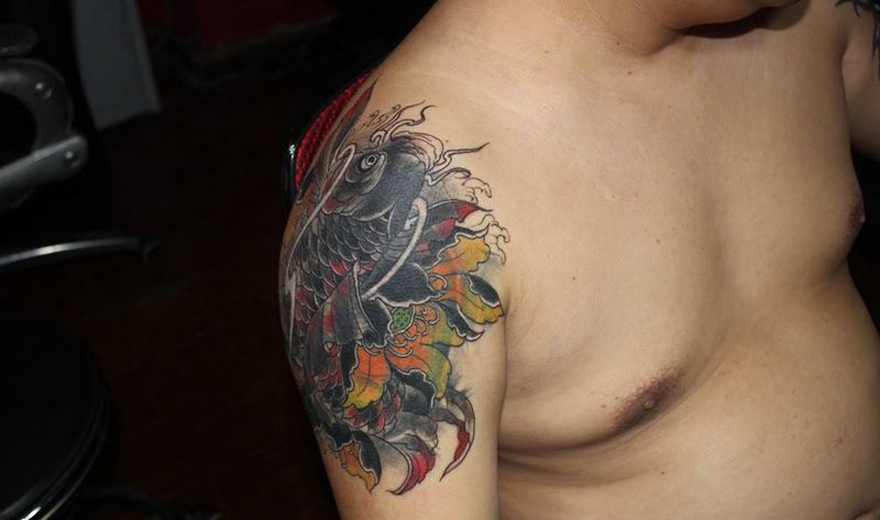当前位置: 首页 >四川省泸州市纹身店-四川泸州巫鸦纹身纹身图案>锦鲤遮盖纹身图片_手臂新传统水墨纹身图案