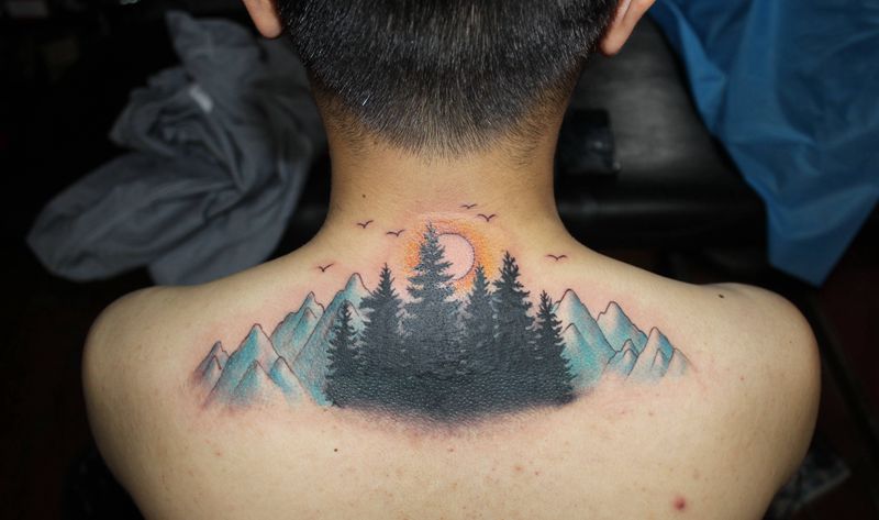 当前位置: 首页 >四川省泸州市纹身店-四川泸州巫鸦纹身纹身图案>遮盖纹身图片_颈部New SchoolOld School山纹身图案