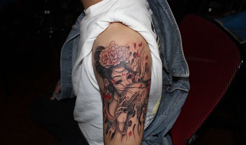 古装纹身图片_手臂老传统新传统艺伎纹身图案