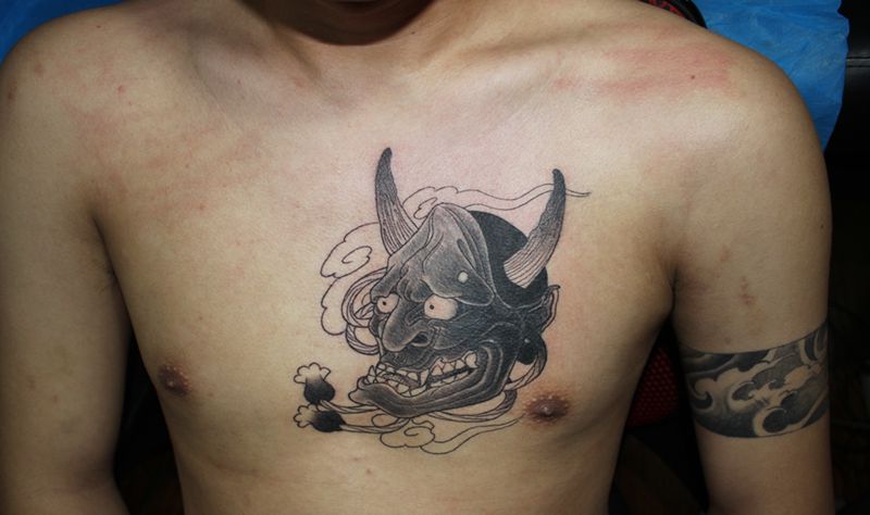 当前位置: 首页 >四川省泸州市纹身店-四川泸州巫鸦纹身纹身图案>般若巧妙遮盖纹身图片_胸部老传统新传统般若遮盖纹身图案