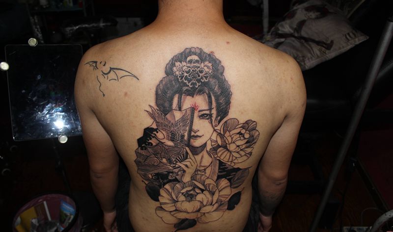 当前位置: 首页 >四川省泸州市纹身店-四川泸州巫鸦纹身纹身图案>古装纹身图片_背部新传统老传统古装艺伎满背纹身图案