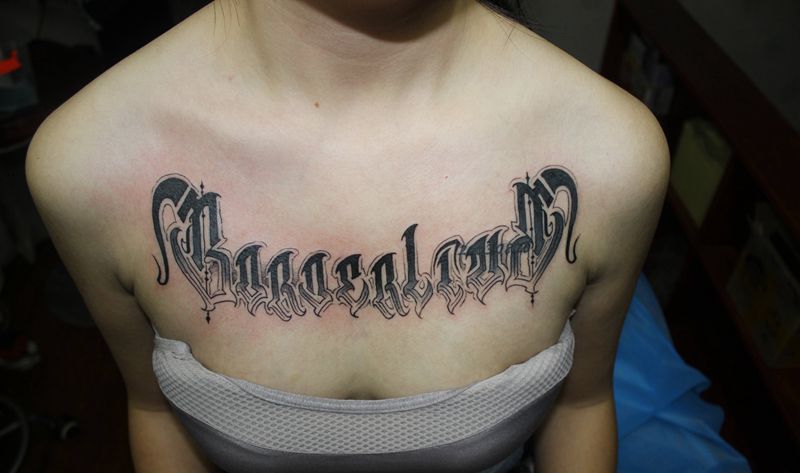 当前位置: 首页 >四川省泸州市纹身店-四川泸州巫鸦纹身纹身图案>花体字花胸遮盖纹身图片_胸部花体字图腾花胸遮盖纹身图案