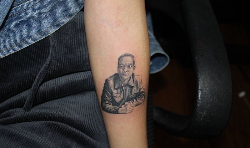 当前位置: 首页 >四川省泸州市纹身店-四川泸州巫鸦纹身纹身图案>《父亲》纹身图片_手臂欧美写实肖像父亲爸爸纹身图案
