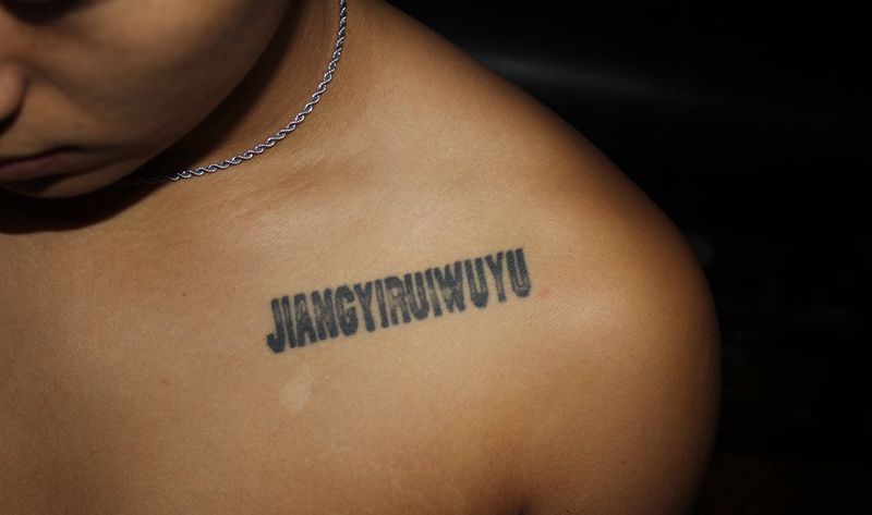 当前位置: 首页 >四川省泸州市纹身店-四川泸州巫鸦纹身纹身图案>英文盖英文纹身图片_胸部花体字New School英文遮盖纹身图案