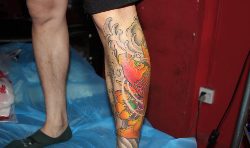 当前位置: 首页 >四川省泸州市纹身店-四川泸州巫鸦纹身纹身图案>别处纹的线条我上色纹身图片_腿部新传统水彩鲤鱼重彩纹身图案
