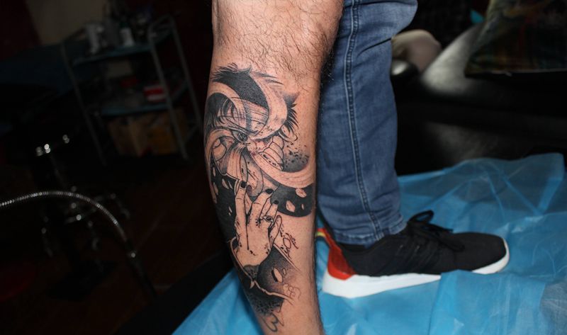 当前位置: 首页 >四川省泸州市纹身店-四川泸州巫鸦纹身纹身图案>宇智波带土纹身图片_腿部New School点刺动漫卡通纹身图案