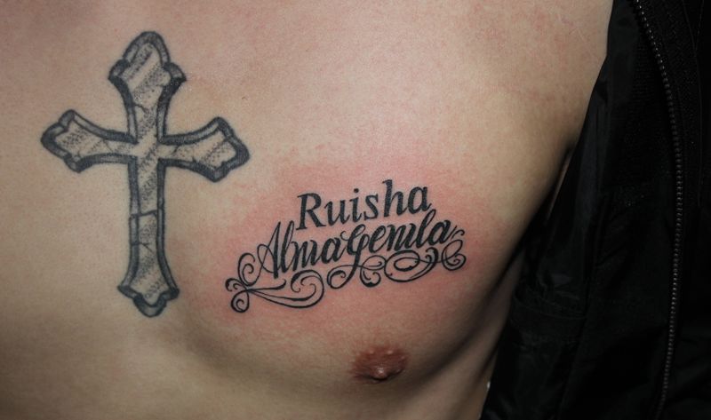 当前位置: 首页 >四川省泸州市纹身店-四川泸州巫鸦纹身纹身图案>花体英文纹身图片_胸部花体字欧美写实花体字奇卡洛英文纹身图案