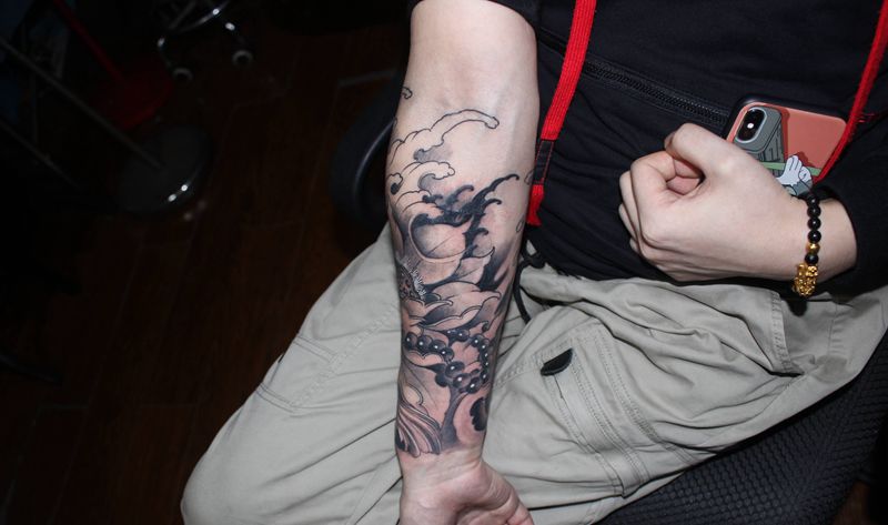 当前位置: 首页 >四川省泸州市纹身店-四川泸州巫鸦纹身纹身图案>莲花小臂纹身图片_手臂新传统水墨莲花包小臂传统纹身图案