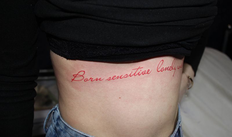当前位置: 首页 >四川省泸州市纹身店-四川泸州巫鸦纹身纹身图案>胸下红色英文纹身图片_腹部花体字水彩英文红色胸下纹身图案