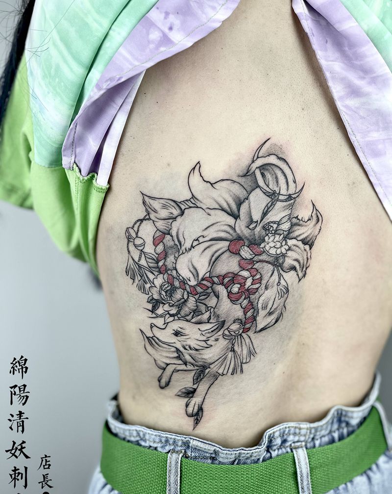 当前位置: 首页 >四川省绵阳市纹身店-绵阳清妖刺青纹身店纹身图案>九尾狐纹身图片_肩部胸部纹身图案