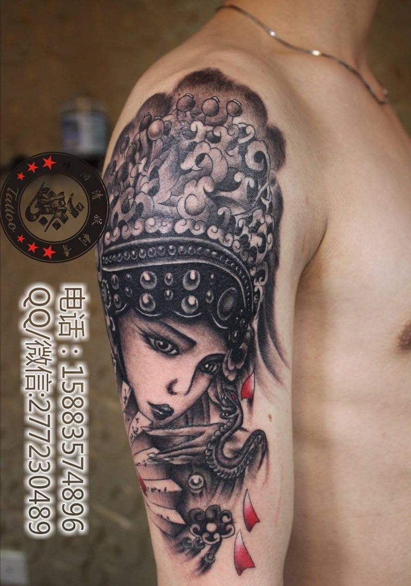 当前位置: 首页 >四川省绵阳市纹身店-绵阳清妖刺青纹身店纹身图案>花旦纹身图片_手臂肖像人物花旦纹身图案