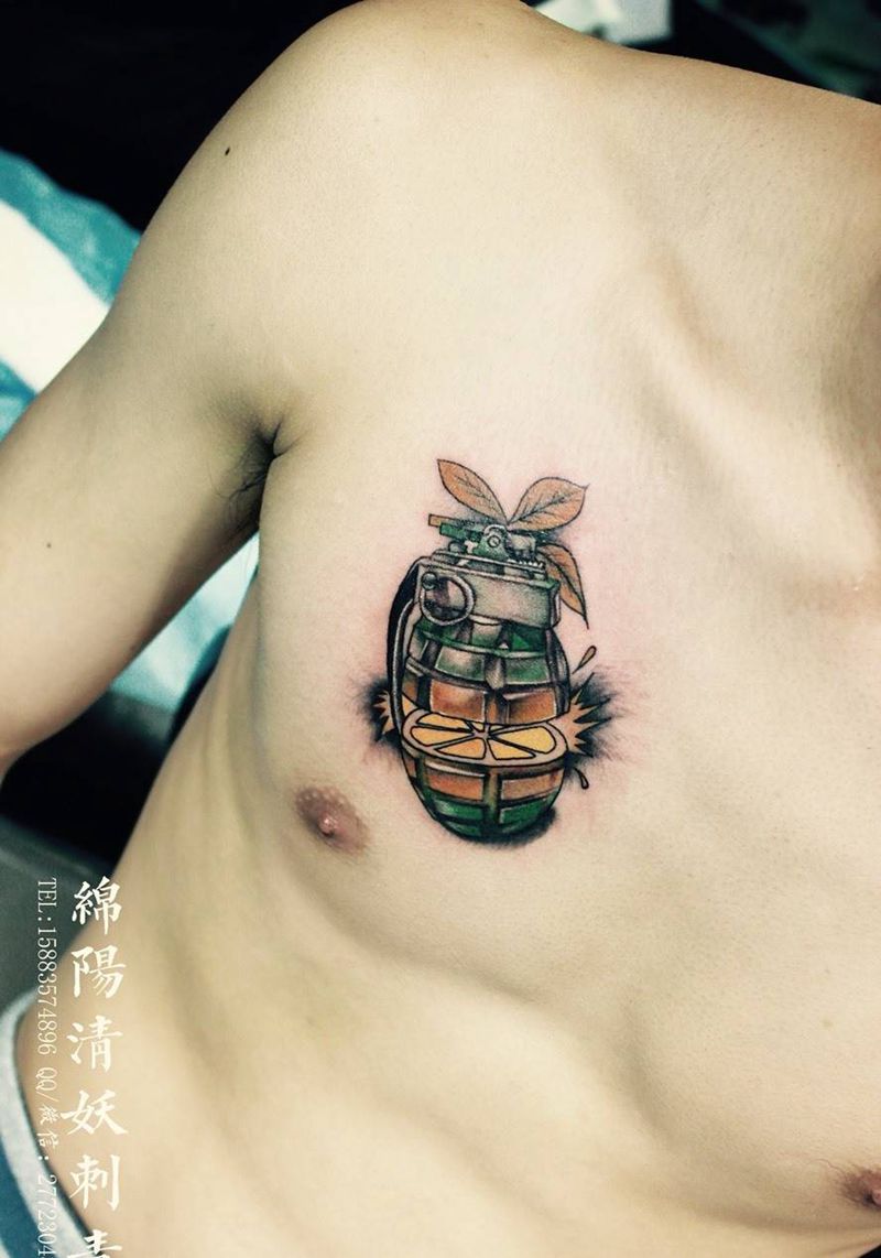 手榴弹纹身,一颗手榴弹千军万马来相见[得意][得意][得意]纹身图片_人物动物原创国画欧美背部肩部臀部手臂腹部纹身图案