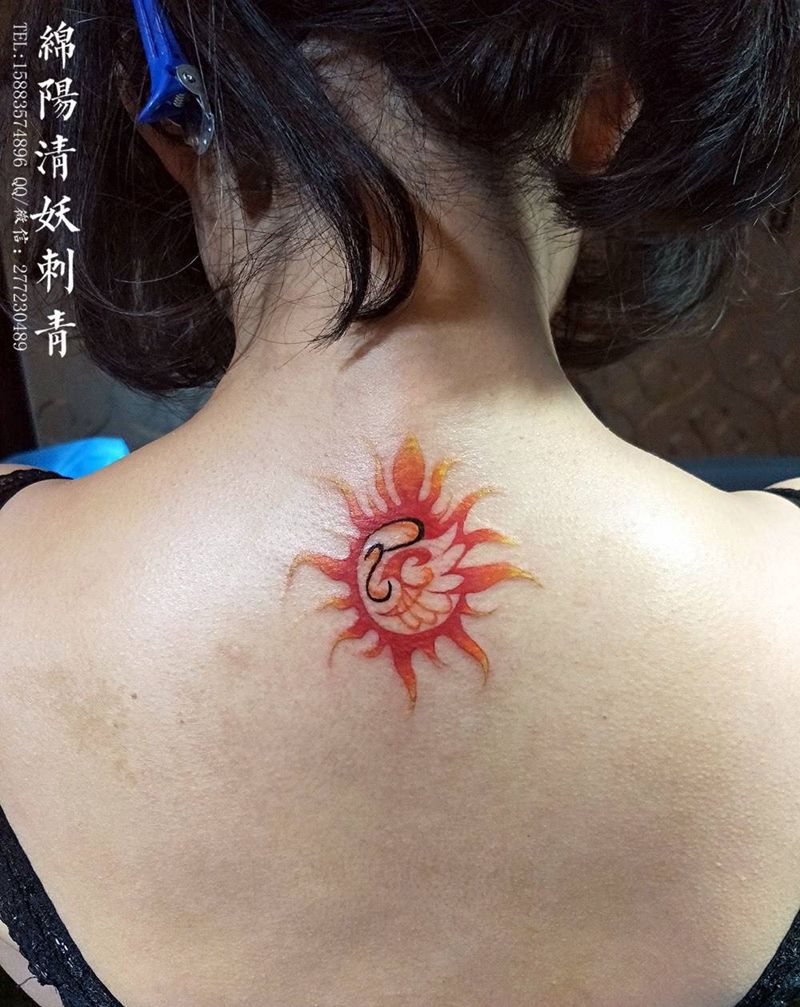 当前位置: 首页 >四川省绵阳市纹身店-绵阳清妖刺青纹身店纹身图案>太阳纹身,下面那排字母非本店作品纹身图片