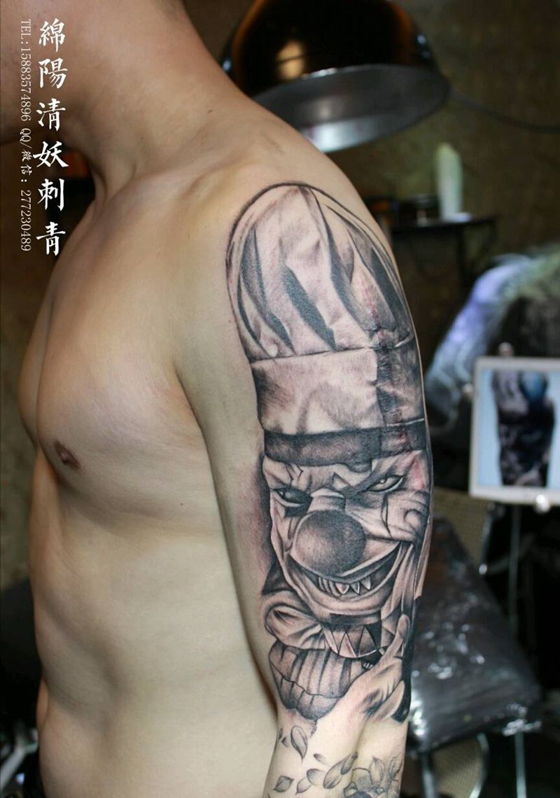 • T包小腿吹火男+阿多福纹身图片_腿部老传统新传统吹火男阿