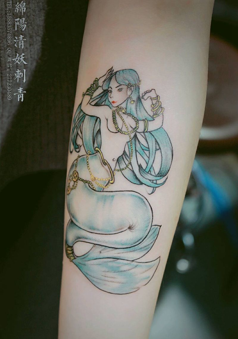 当前位置: 首页 >四川省绵阳市纹身店-绵阳清妖刺青纹身店纹身图案>美人鱼纹身纹身图片_手部传统肖像清新写实动物人物静物图腾原创纹身图案